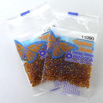 У бисера из Чехии есть несколько ключевых преимуществ: одинаковый цвет, форма и размер бисеринок (калибровка) одинаков в упаковке и во всей партии. Он не линяет и не выгорает. Устойчив к трению и сохраняет свой первоначальный вид даже через несколько лет. Preciosa качественне китайского и дешевле японского бисера. Диаметр 2,2 - 2,4 мм (размер 10/0), в 1 грамме - около 60 штук.